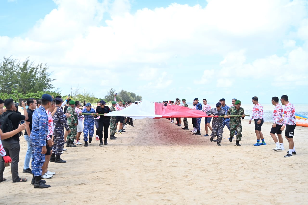 Kegiatan yang dimulai dari Kota Banjarmasin ini berakhir dengan pembentangan bendera merah putih di Pantai Batakan, Kabupaten Tanah Laut, Sabtu (12/8).